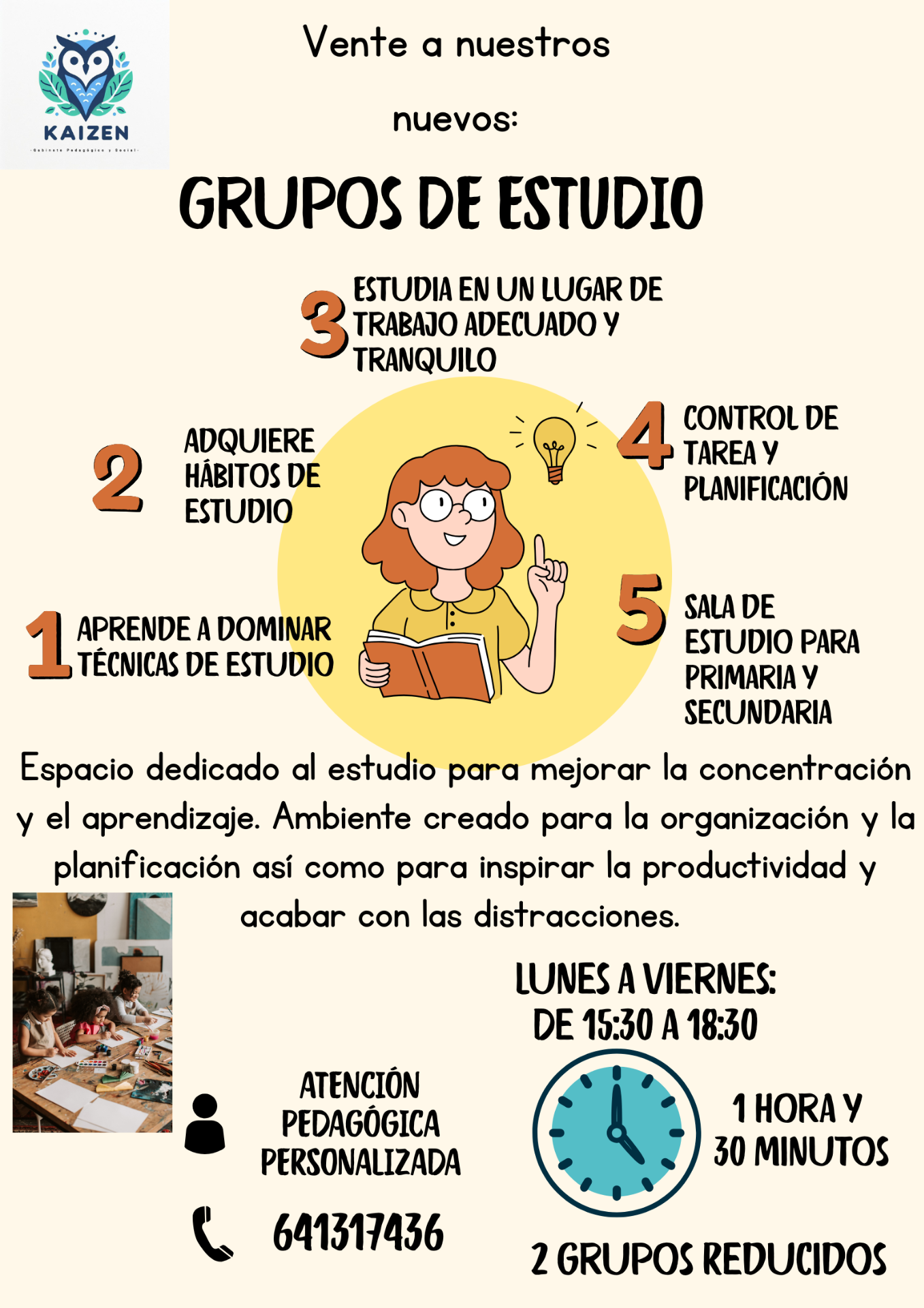 Entrenamiento en estrategias de aprendizaje, técnicas de estudio y mejora de la atención.